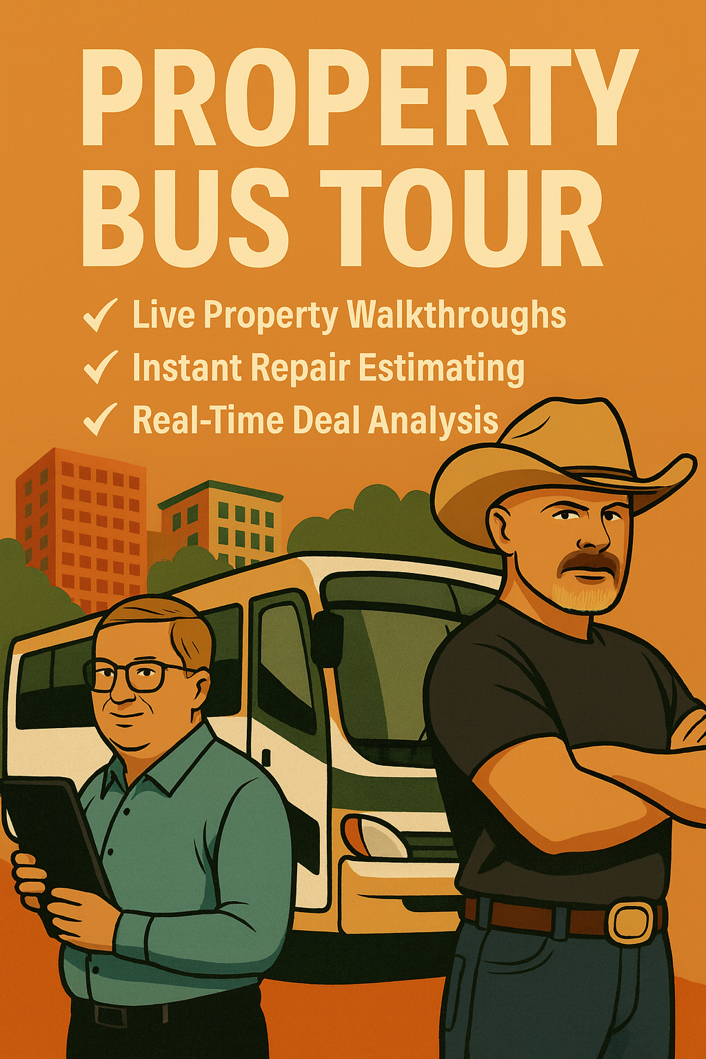 ✔️ On-site property tours: walk two live deals with your coaches, Bill & Jon